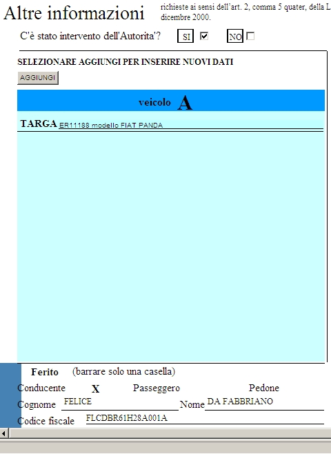 Procedere con la compilazione dei dati, specificando se ad esempio il ferito risulta essere un Pedone, un Passeggero , o lo stesso Conducente.
