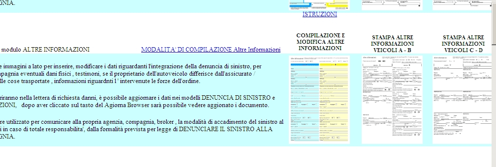 SEGUIRE LA STESSA PROCEDURA PER L ' INTRODUZIONE DEI DATI RIGUARDANTI LE COSE TRASPORTATE NEL VEICOLO DANNEGGIATESI NEL SINISTRO.