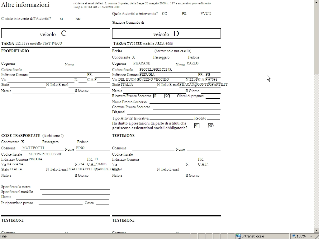 SEGUIRE LA STESSA PROCEDURA PER L-INTRODUZIONE DEI DATI RIGUARDANTI UN TESTIMONE