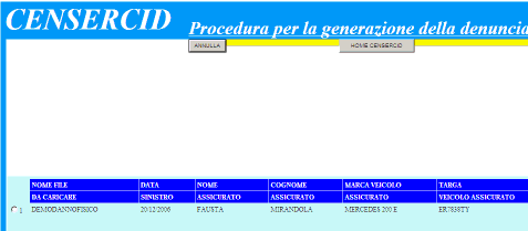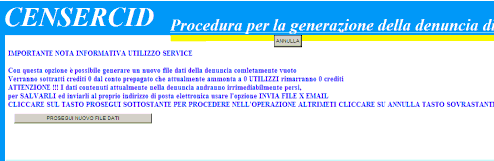 Con l'opzione HOME CENSERCID si tornera' alla pagina principale CENSERCID.