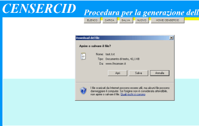 Con l'opzione SALVA sara' possibile salvare i dati contenuti nella procedura CENSERCID