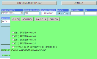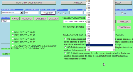 Cliccando sul pulsante verde COMPUTO PUNTI si potranno inserire da apposite tabelle le patologie di riferimento.