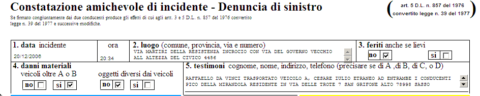 allegato il modello che contiene le informazioni sulla dinamica del sinistro.
