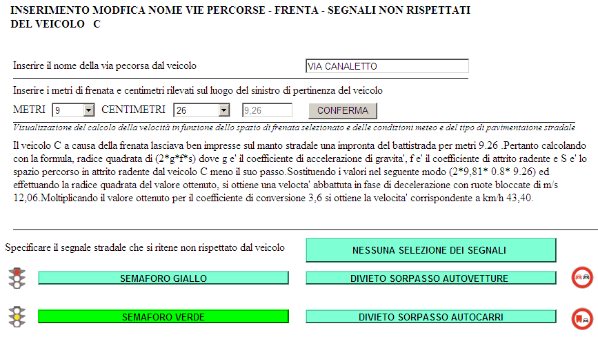 Nel pulsante SEGNALE VIA FRENATA comparira' VEICOLO C , cliccando su quest'ultimo