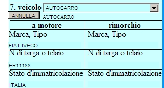 il menu' scomparirà e nel campo veicolo comparirà l'opzione